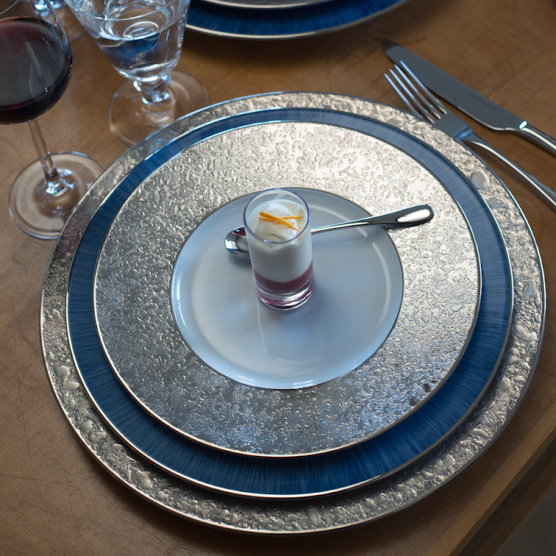 Moonscape is also available is Uni white with a matt glazed rim or decorated with a gold or platinum rim