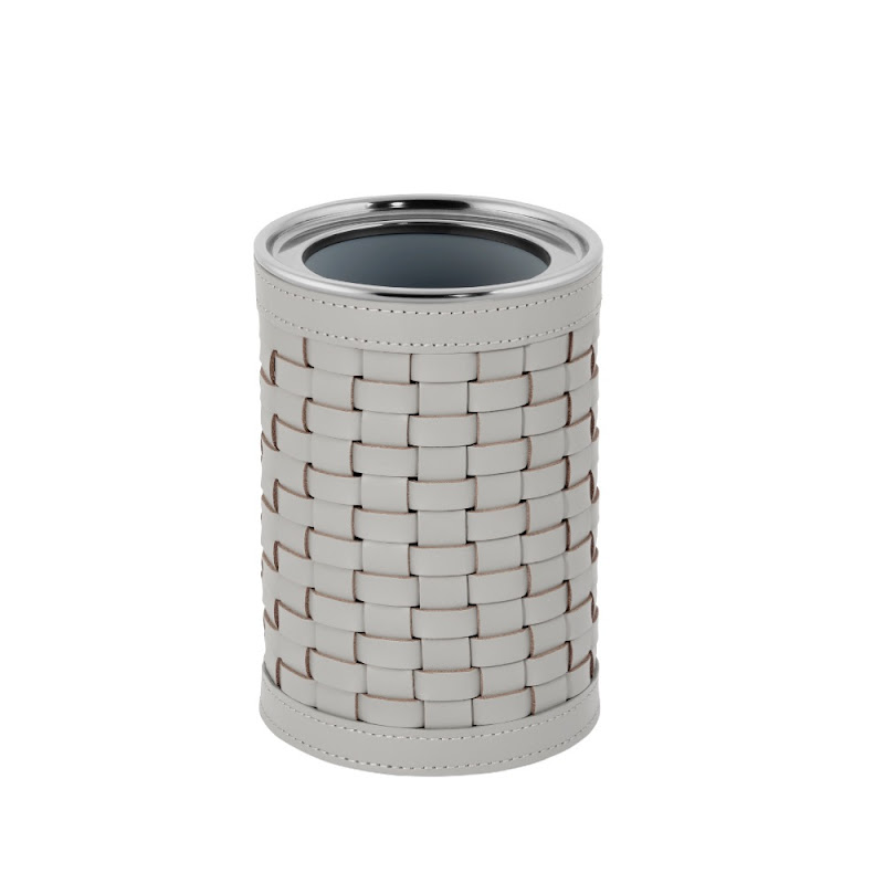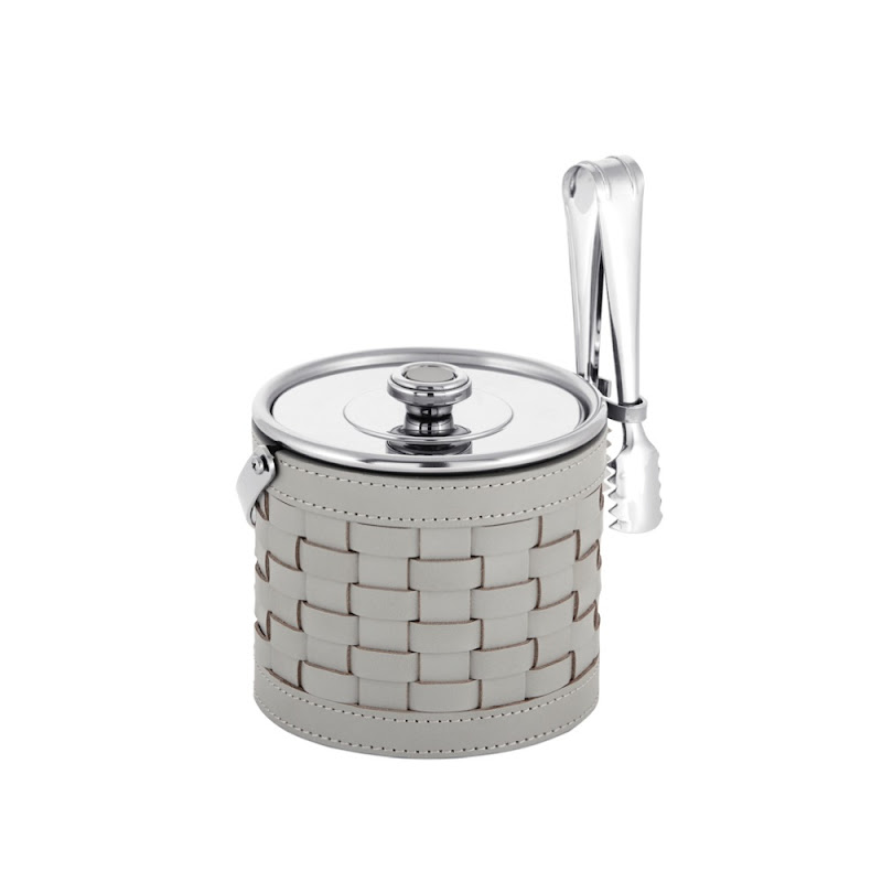 Riviere Bar Accessories made of stainless steel, covered with hand woven leather in Grey