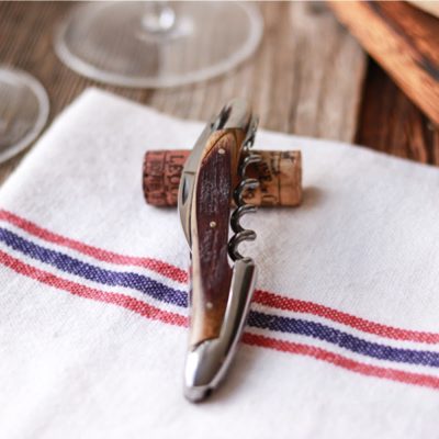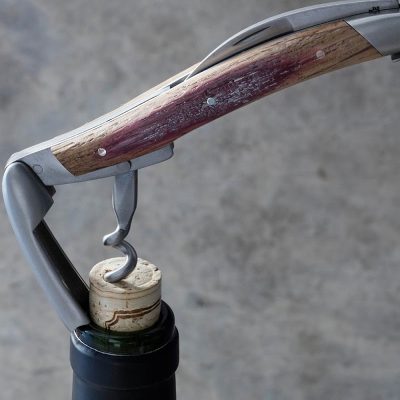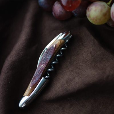 The worm of the corkscrew has five coils that is guaranteed to pull out long corks. The blade is sharpened allowing the capsule to be cut off cleanly and easily. This knife comes in an elegant black leather pouch.