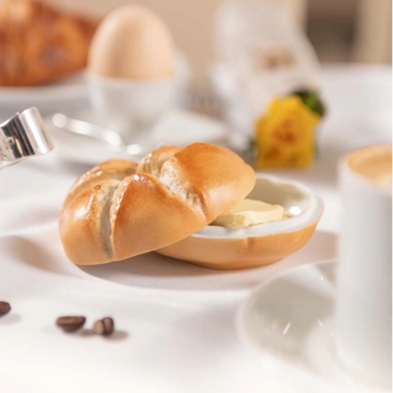 The particularly real-looking Viennese "Kaisersemmel" is a fun table decoration, but can also be used as a butter- or jam dish.