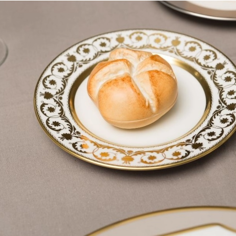 Emperor Franz Joseph I also had to eat breakfast to get his day off to a good start. The emperor had a special fondness for resche Handsemmeln. This fine Viennese white pastry was distributed in all cities on the occasion of his birthday on 18 August. As a whimsical decoration, rolls and other pastries were made of porcelain for the imperial table. Augarten has revived this tradition and added the deceptively genuine KAISERSEMMEL to its range as a tin.