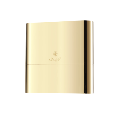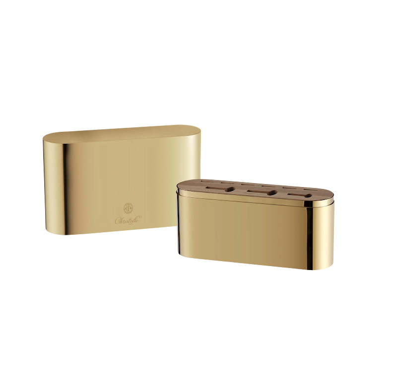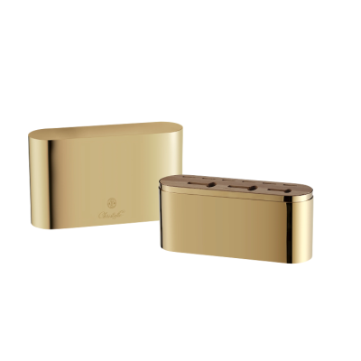 Cutlery box steel with golden finish and wooden inlay, including 24 pieces cutlery set l'Ame Gold