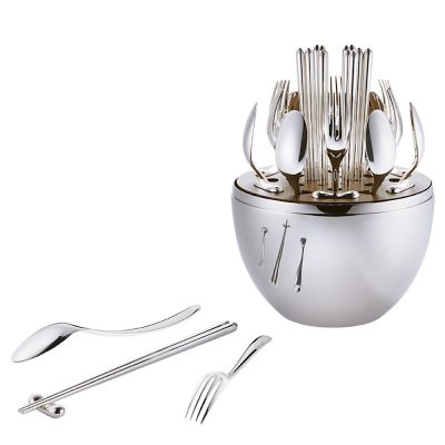 Silverplated 24-piece 'Asian' cutlery set in stainless steel 'egg' case
