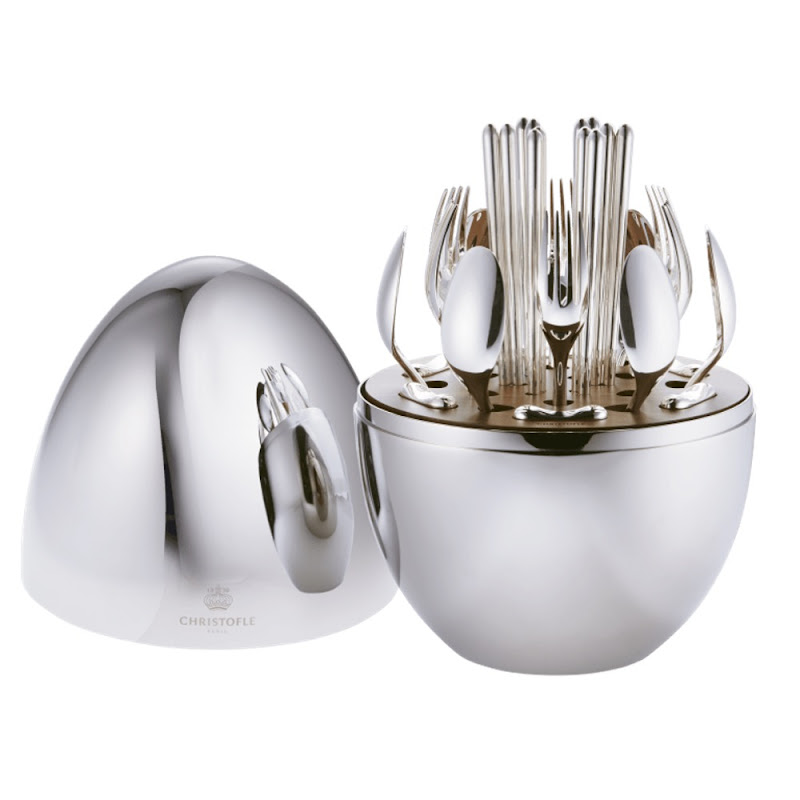 Silverplated 24-piece 'Asian' cutlery set in stainless steel 'egg' case
