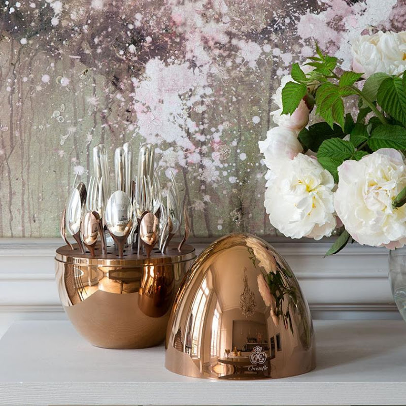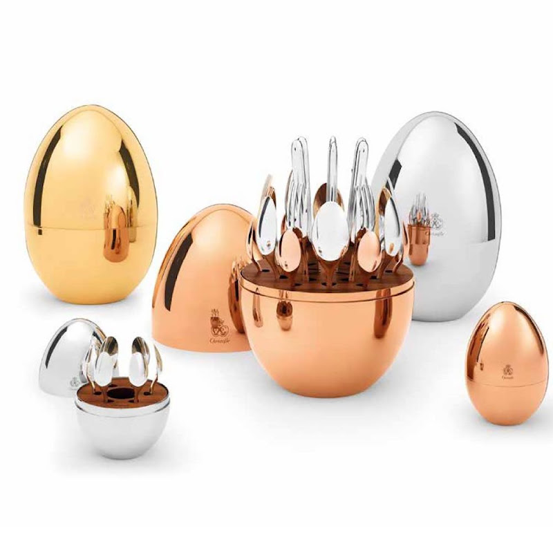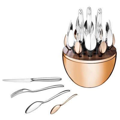 Silverplated 24-piece cutlery set in copper-coloured steel 'egg' case
