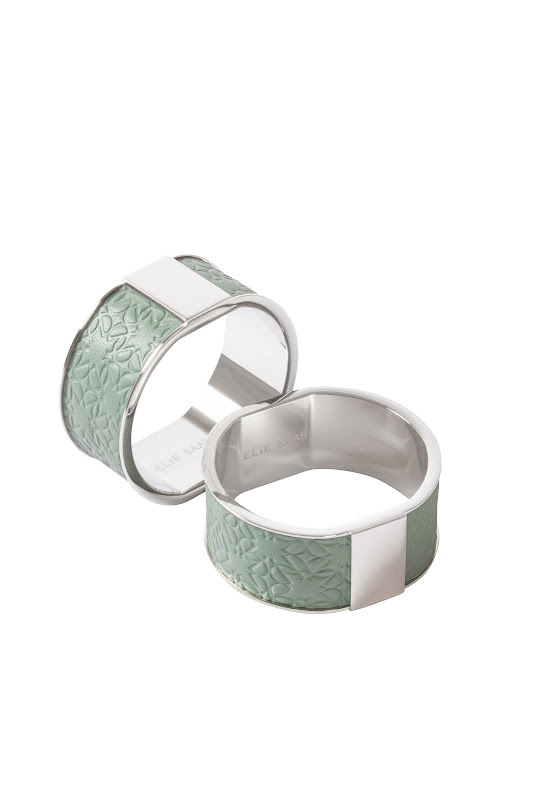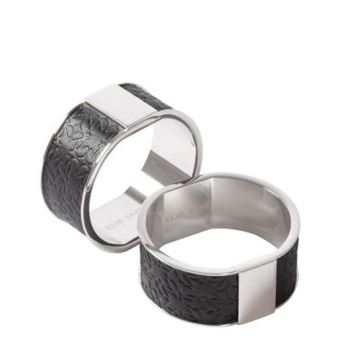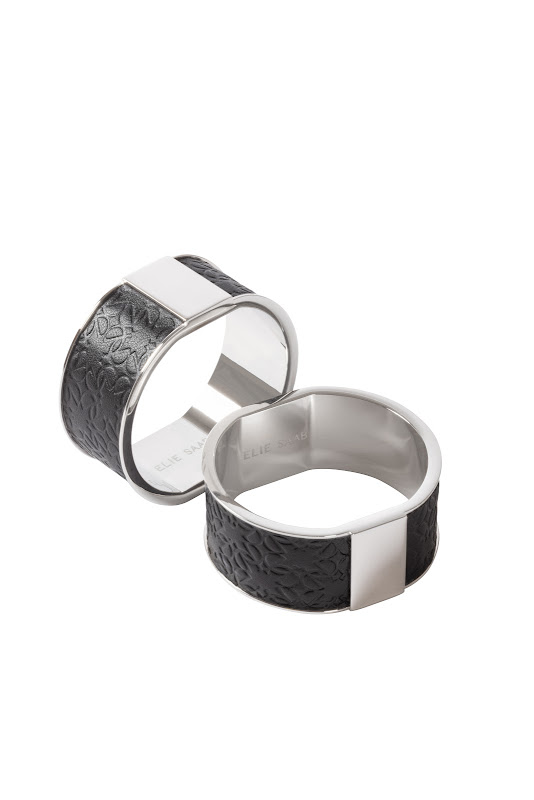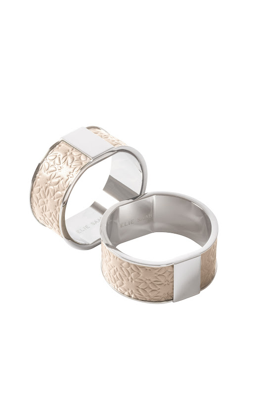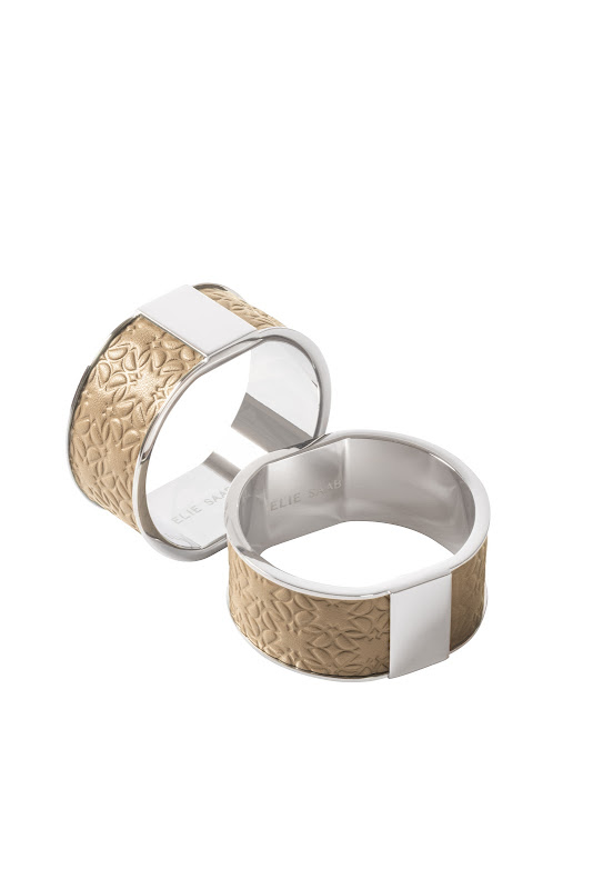 Set of 2 napkin rings made of polished palladium and padded leather featuring the ELIE SAAB Monogram pattern.