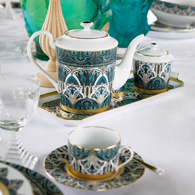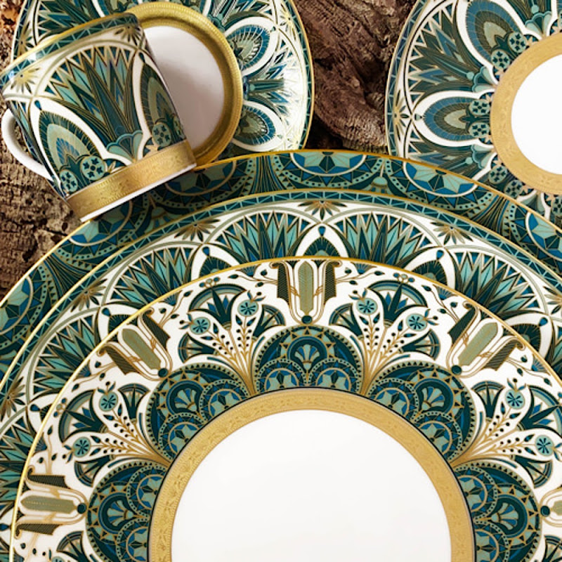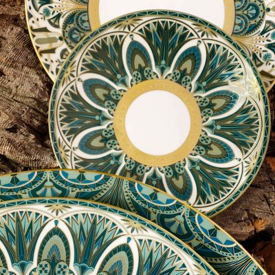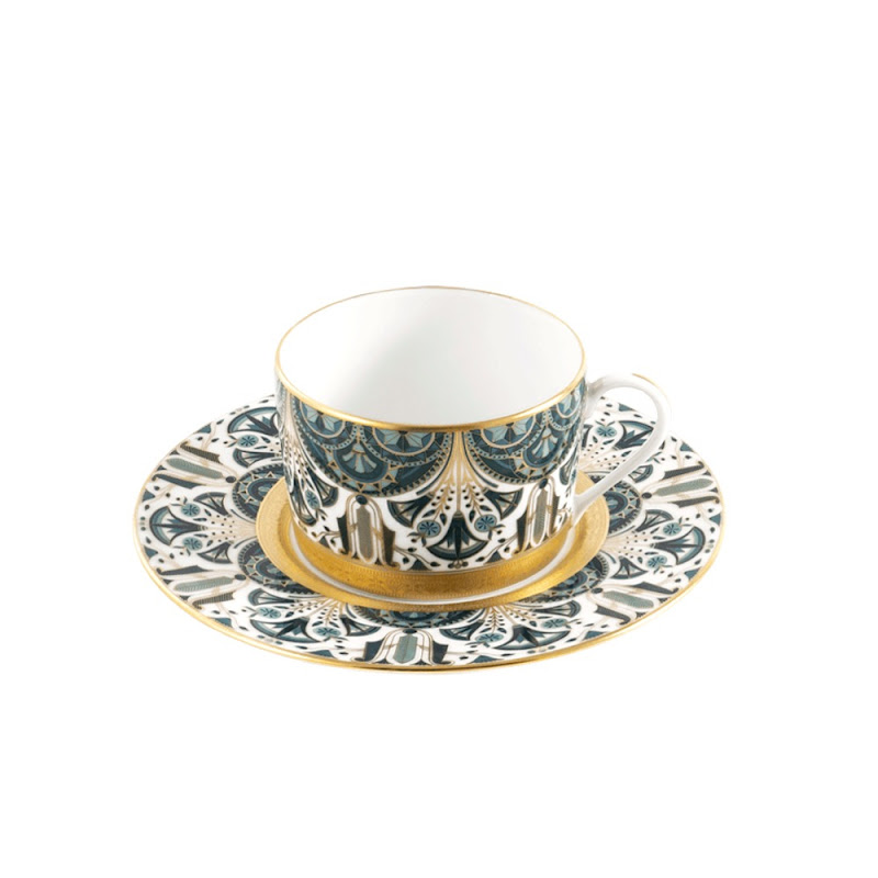 Decorated with ancient Egyptian motives and refined with golden fries in reliëf which is dishwashersafe