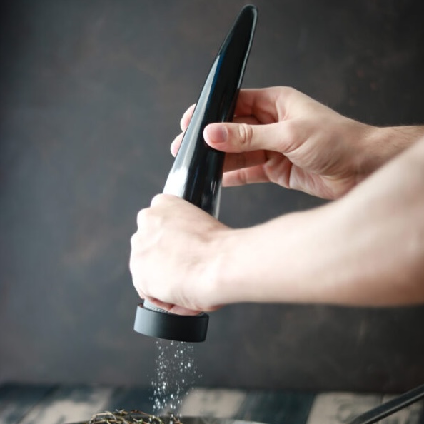 Original Forge de Laguiole® salt & pepper mill, with a handle made of real cow horn from the Aubrac region