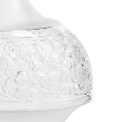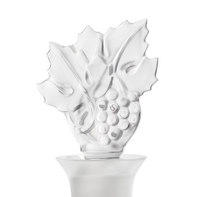 Highlighted by satin-finished crystal, a frieze of grapes and vine leaves run through this exceptional object, crowned with a stopper carved with graphic stripes.