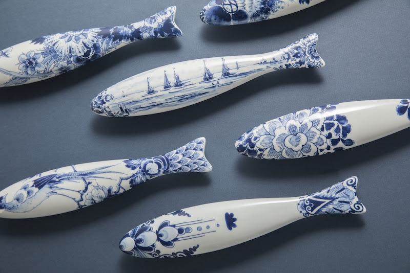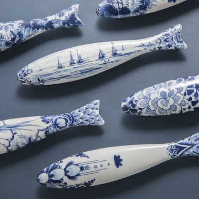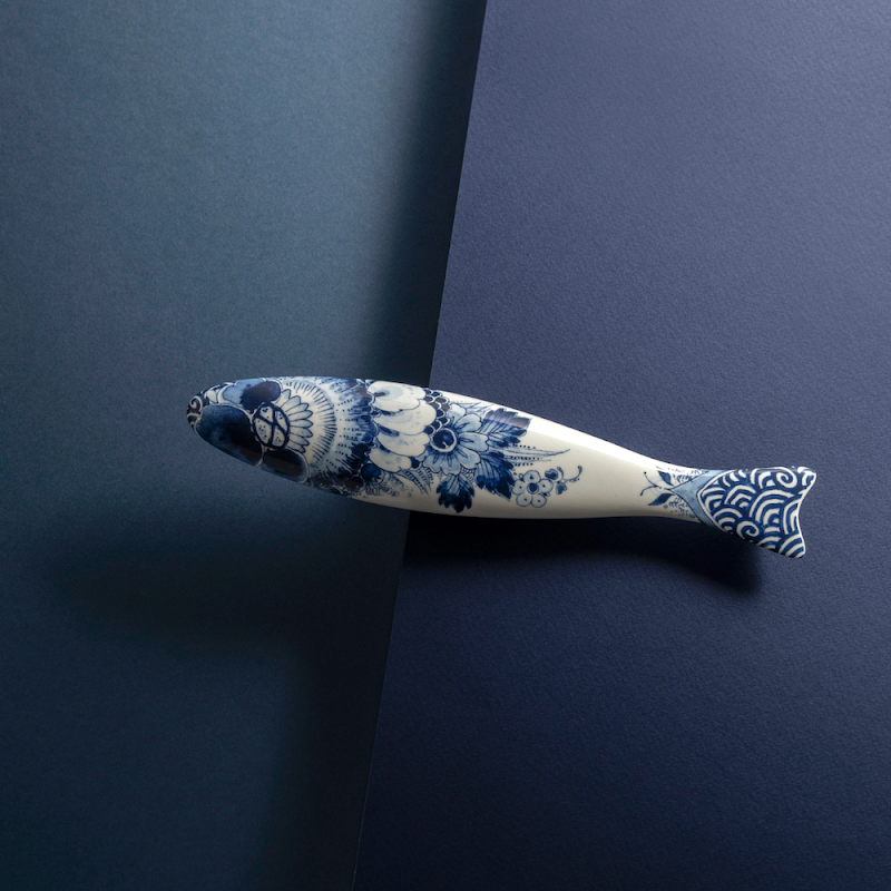 Blue Herring is a unique collection of six ceramic herrings, each with its own beautiful Delft Blue decoration. The herring is designed as an eye-catcher on the wall. Royal Delft will introduce this series in 2024, in collaboration with the design duo Koens and Middelkoop. Each design in this series, including Peacock Scales, Dragon Fly Flower, Mesdag’s Fleet, Flower Scales, Art Deco and Flower Bed, tells its own story and combines the Dutch herring tradition with beautiful Delft Blue artwork. The pegs can be hung decoratively on the wall using a cork and a nail.