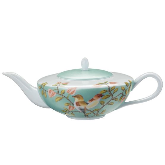 Tea set consisting of: tea pot, sugar bowl with lid, creamer and 2 tea cups and saucers