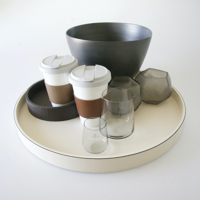 Coffee To-Go mug with leather sleeve in Navy Blue