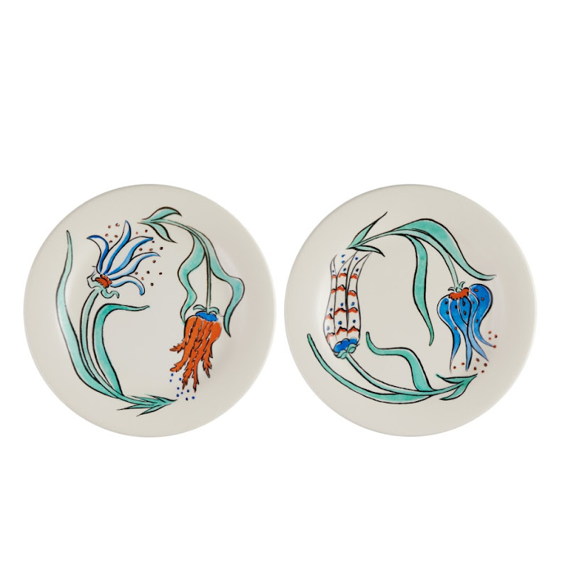 The pieces of this set form the palace flower gardens, where the turtle can be seen among tulips, bringing them light. There are four flowers, each one depicted on a dessert plate and given a name : mischievous, artful, gracious and Favorite. The turtle falls in love with this last one. On the cake plate, whilst the three other tulips try to enamour the turtle with their charms, he only has eyes for the Favorite.