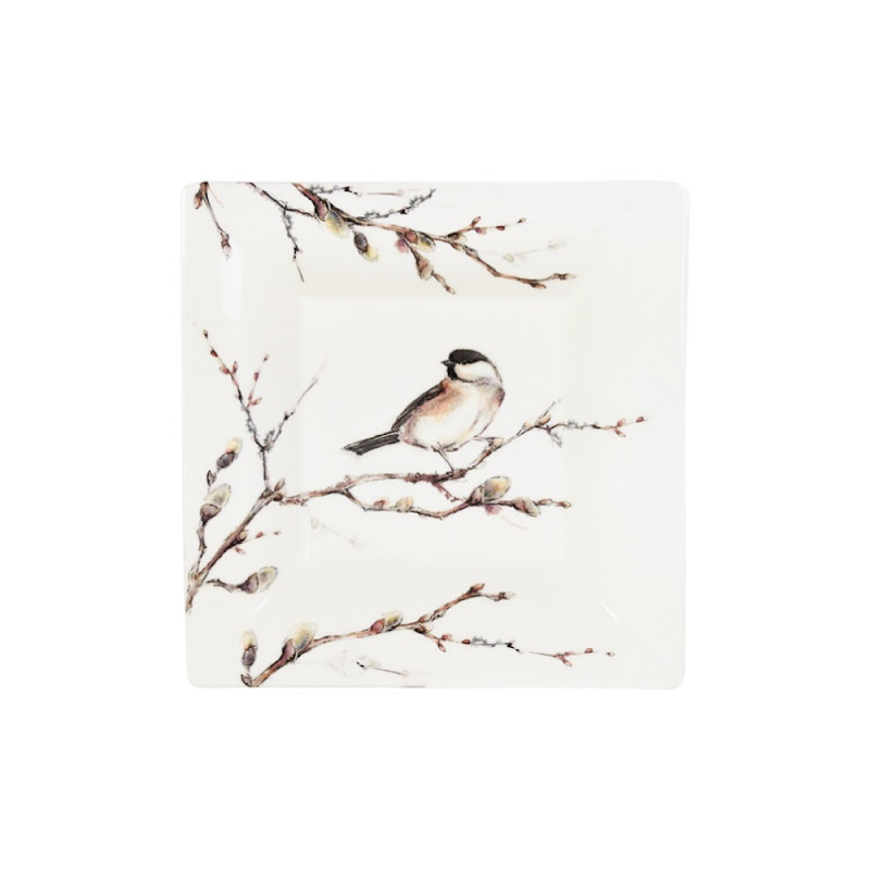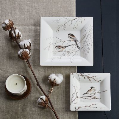 Square dish deep small, gift boxed. - "Les Oiseaux de la Fôret" by Gien quantity