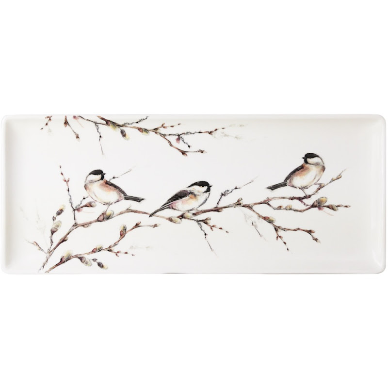 Oblong serving platter, gift boxed. - "Les Oiseaux de la Fôret" by Gien quantity
