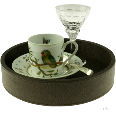 Leverbaar in diverse maten en in zeer veel verschillende kleurenRound tray ø 20 cm, covered with calfsleather