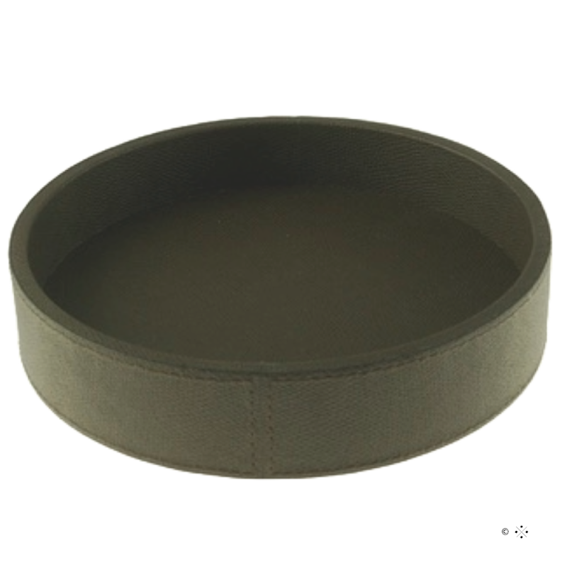 Leverbaar in diverse maten en in zeer veel verschillende kleurenRound tray ø 20 cm, covered with calfsleather