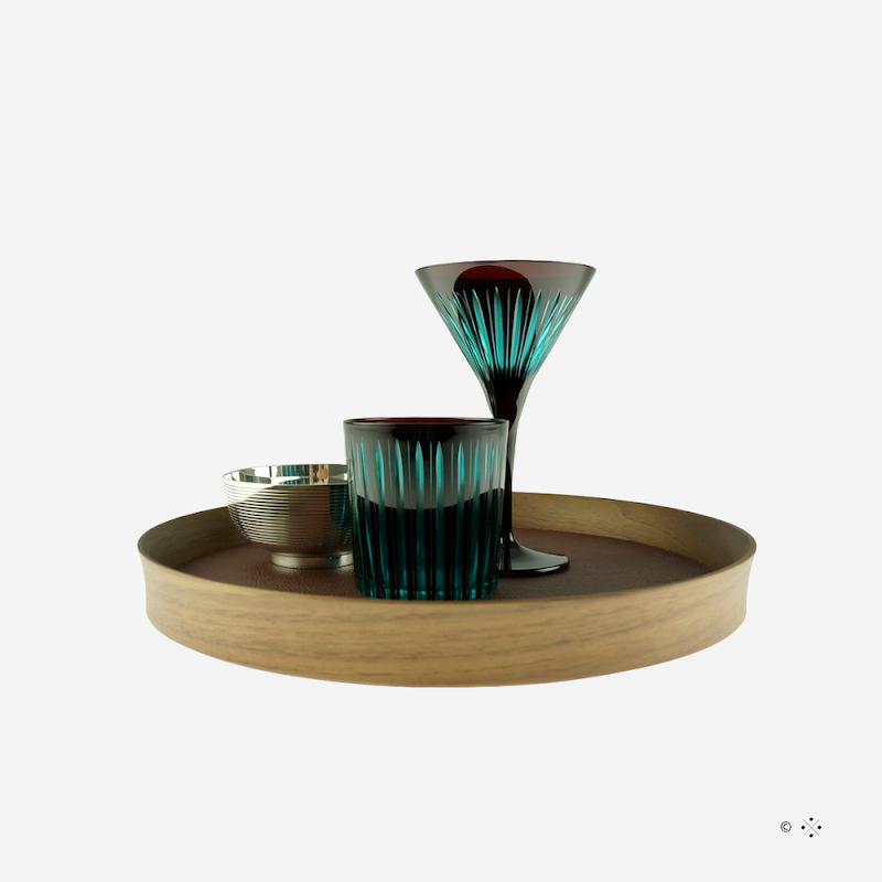 With inlay of Pelle Frau ® leather, round tray made of walnut wood