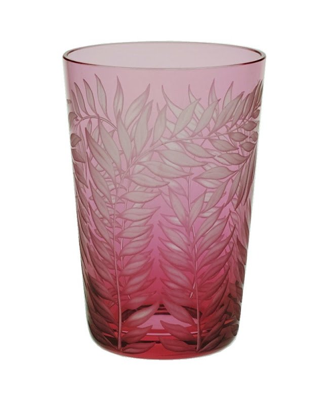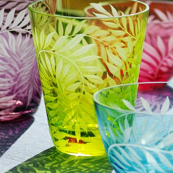 Cristal tumblers in Überfang technique (2 layers of glass-technique), hand-engraved