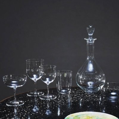 He created this set in a period, when heavily cut Crystal was in fashion and thus generated a classic of modern design, that cannot be topped in its simplicity and perfect proportions. The idea for that design was that new, that one might call it an invention
