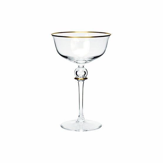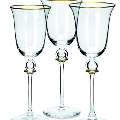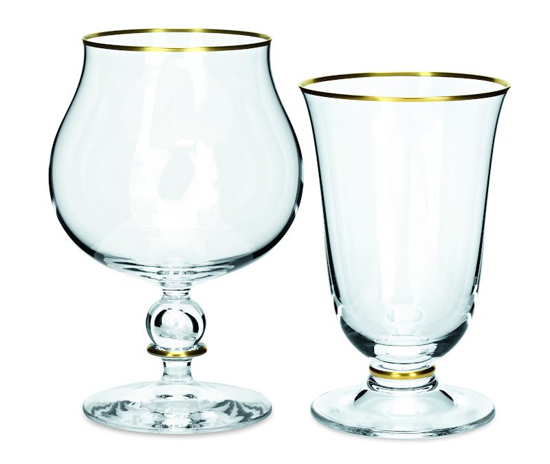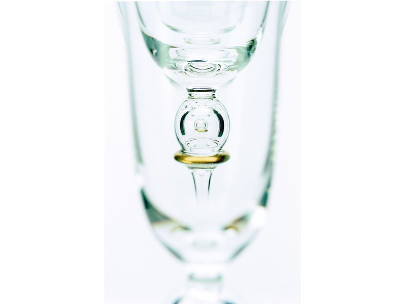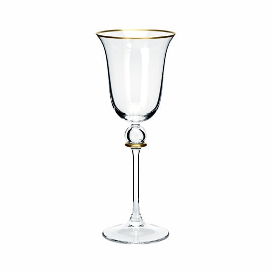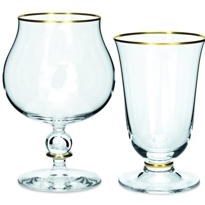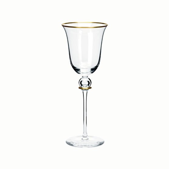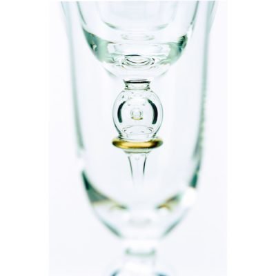 Mouthblown, hand-made crystal with glass sphere at the handhold and 24 carat-gold fillet