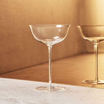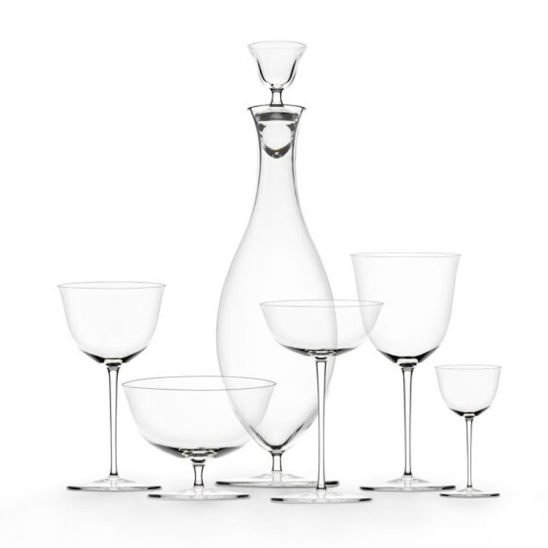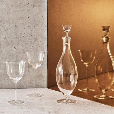 The elegantly balanced stemware was designed by Hoffmann for Lobmeyr as early as 1917. The material, very fine muslin glass — mouth-blown in wooden moulds — provides perfect elegance.
