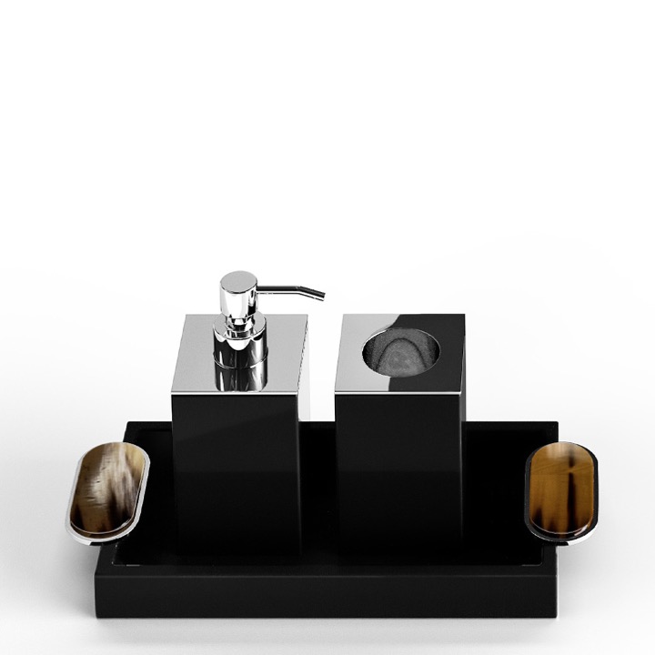 | Lacquered tray with handles in horn and chromed brass