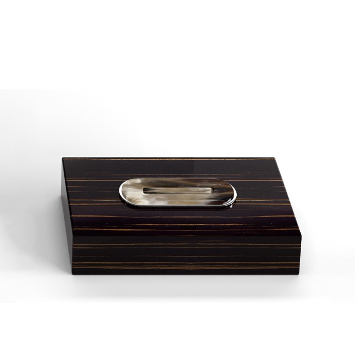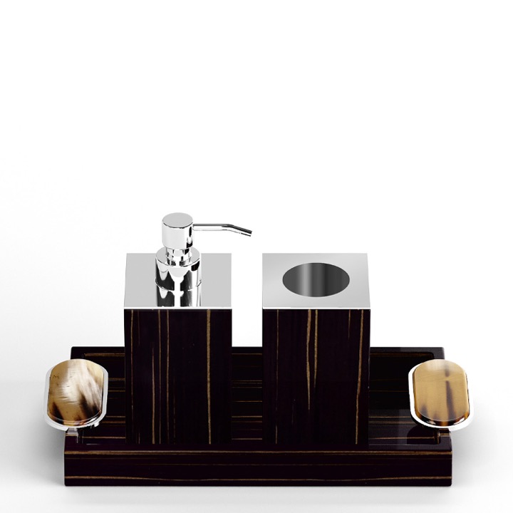 | Tray in glossy ebony with handles in horn and chromed brass