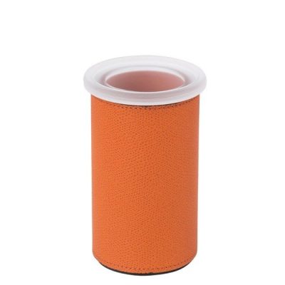 Leather covered frosted mouth-blown glass structure.