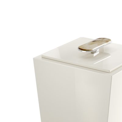 Wood with lacquered ivory gloss finish. The handle of the lid is made of horn and chromed brass