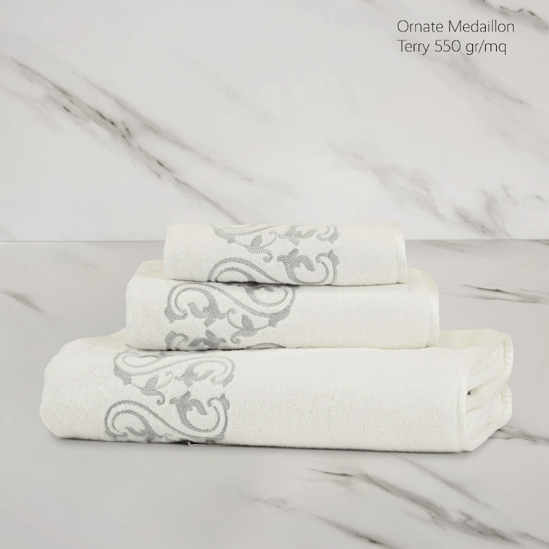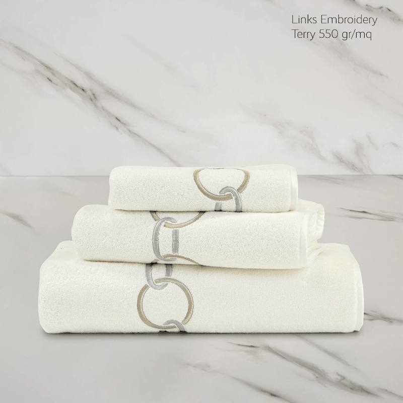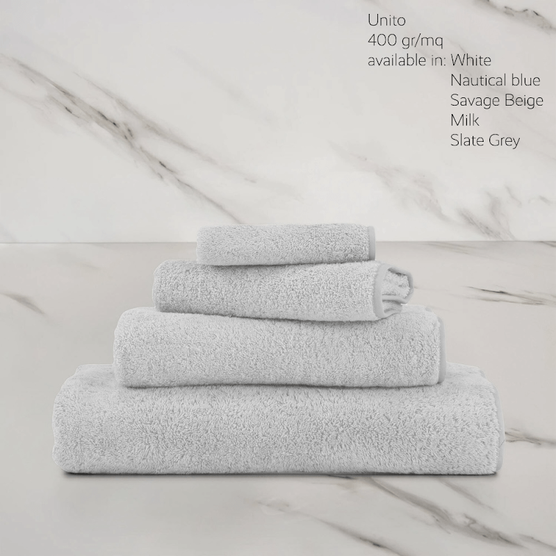 Frette bath linen is made in 550 gr/m2, with the exception of the Unito collection which is made in 400 gr/m2. Almost all collections are edged with cotton satin piping. Depending on your choice of design, if desired also made with your personal logo or design, available in 3 to 4 sizes