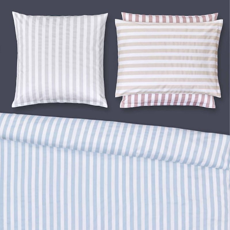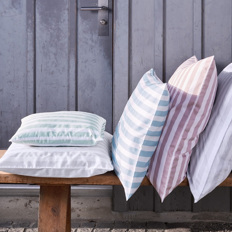 Stripes are a timeless classic when it comes to motifs. Printed on our finest cotton satin, pastel accents create a beautiful interplay with the white background. Whether used as a statement piece or combined with other designs, CALMA adds a touch of serenity to your bedroom thanks to its understated elegance.