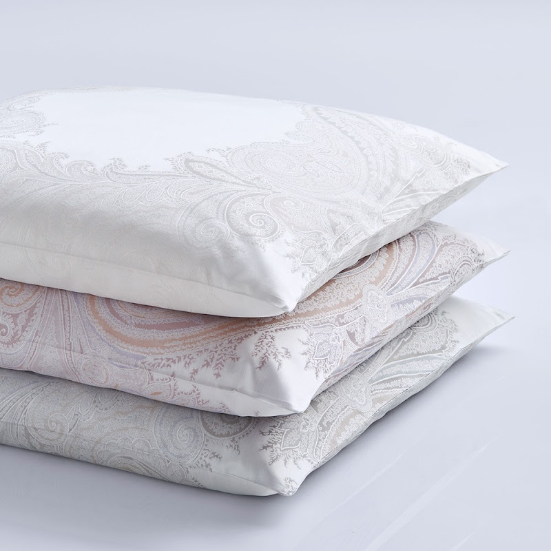 Grace is a masterpiece of jacquard weaving of the highest quality and craftsmanship. The magnificent, beautiful paisley motif is made in Italy by one of the finest weavers, in shades of gold, silver, and rose. Warp and weft colors are ingeniously interwoven to create a deep, multicolored effect with the most luxurious appearance