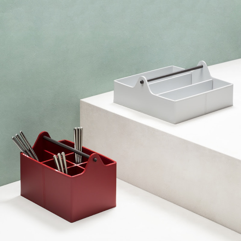 Fully handmade Tecnocuoio® leather basket with deviders.