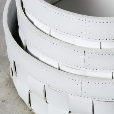 Woven saddle leather baskets.