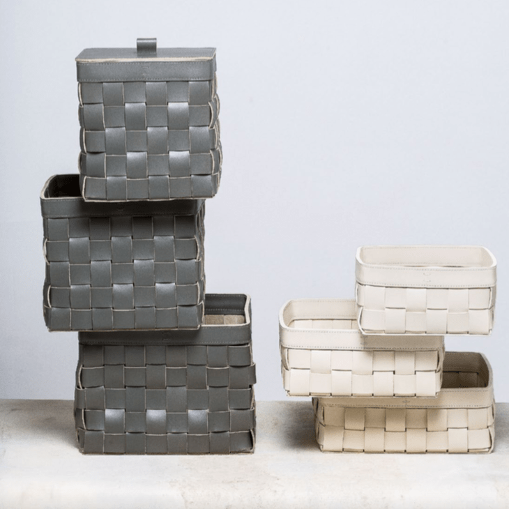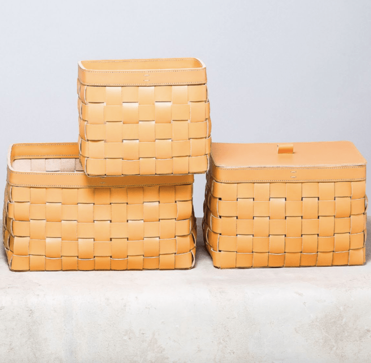 Woven saddle leather baskets.