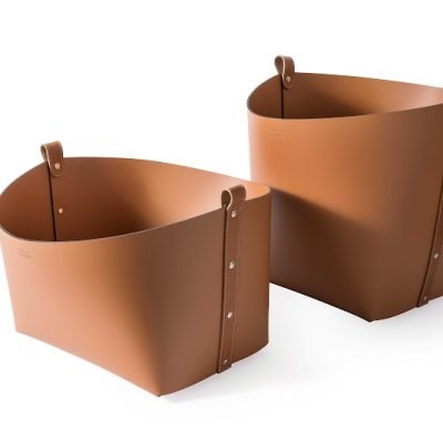 Baskets, made with eco-friendly, washable, and resistant leather, suitable also for outdoor use. Can be used as magazine holder, shoes or towel basket for yacht, SPAs or personal use