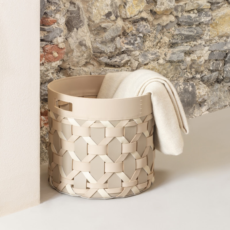 All leathers are provided with a water resistant finish. Thanks to an exclusive treatment, the saddle leather dries perfectly, doesn't lose its characteristics and doesn't leave color stains after being in contact with water. Ideal for towel baskets.