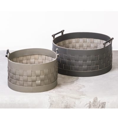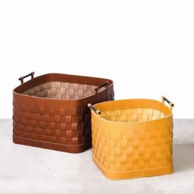 These beautiful leather baskets are available in square, rectangular and round in various sizes and colours.