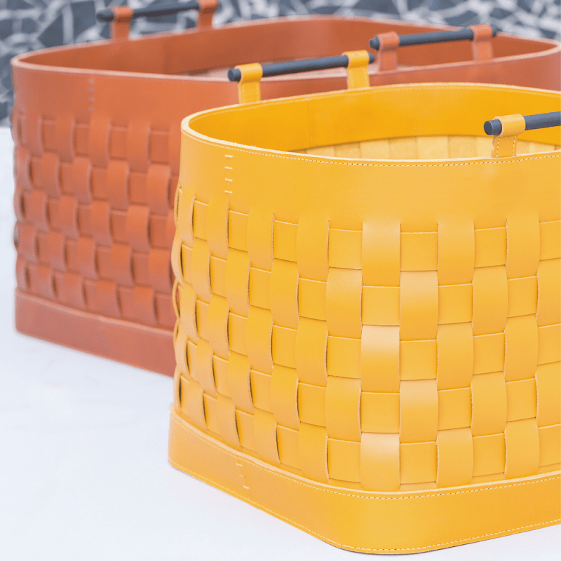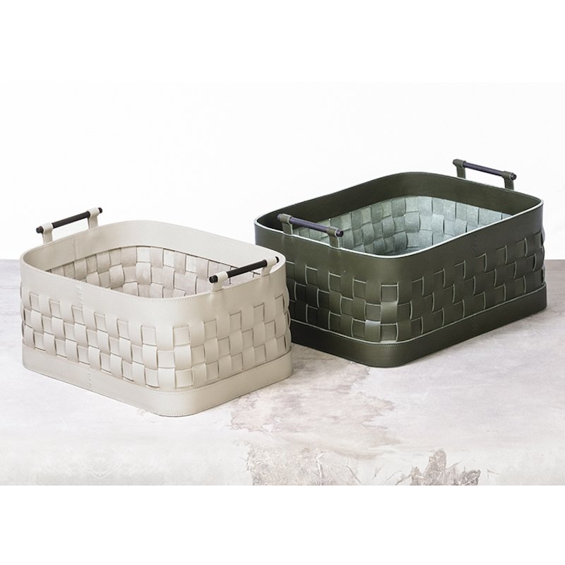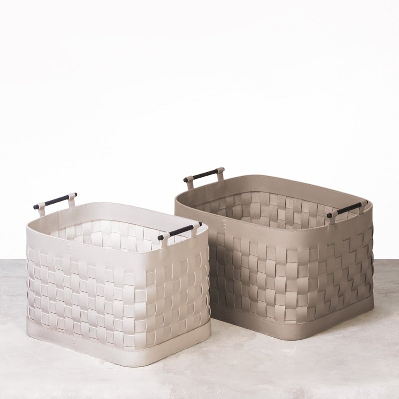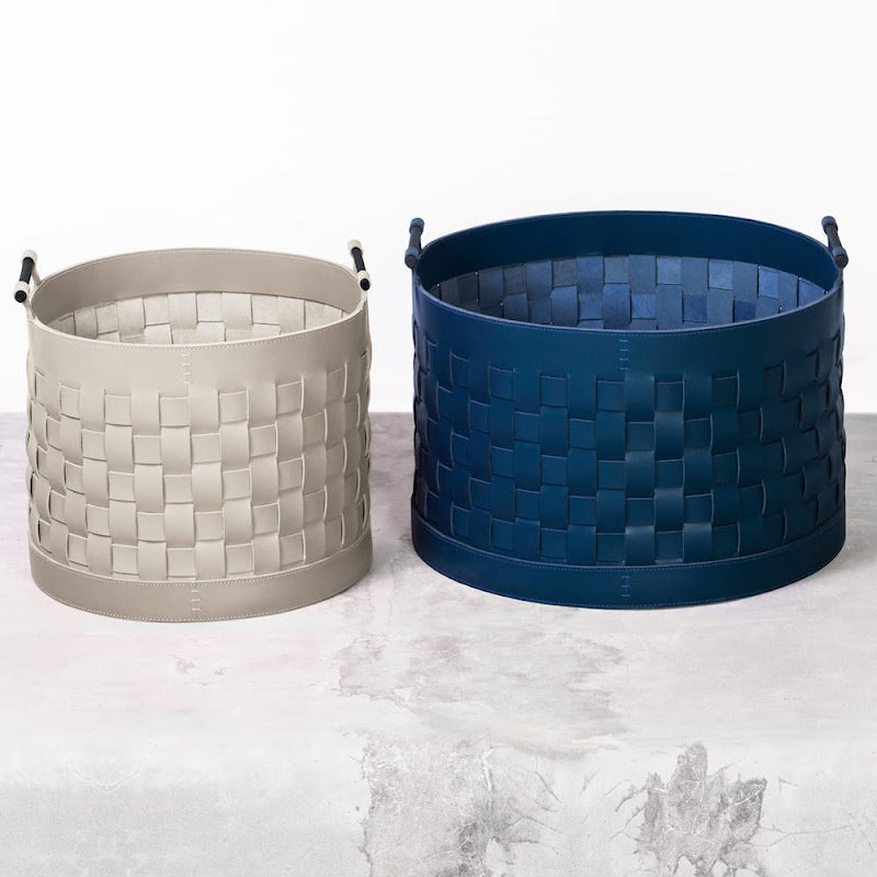 These beautiful leather baskets are available in square, rectangular and round in various sizes and colours.