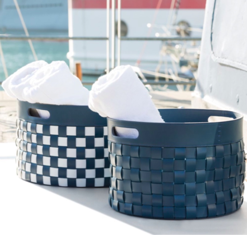 This beautiful leather basket comes in round, rectangular and square in various sizes and colours.