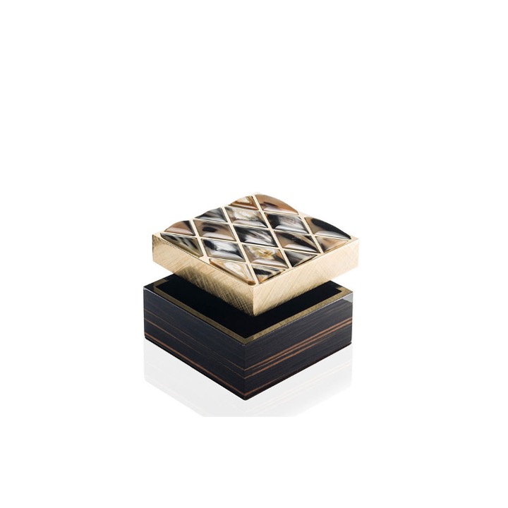 Macassar ebony with horn details and brushed gilded brass
