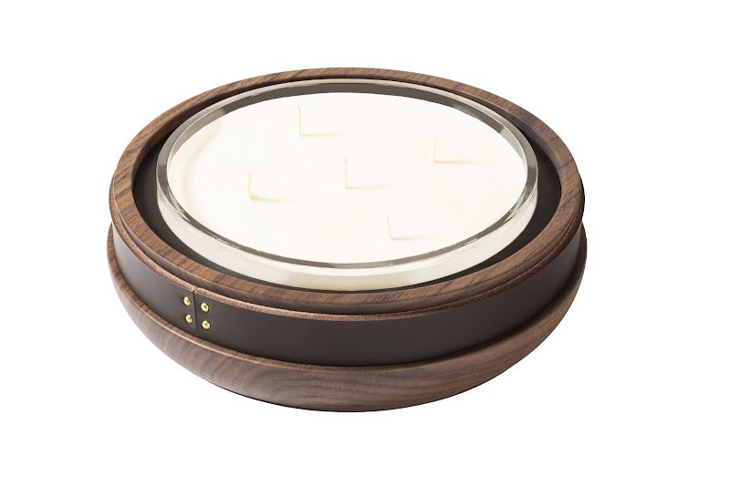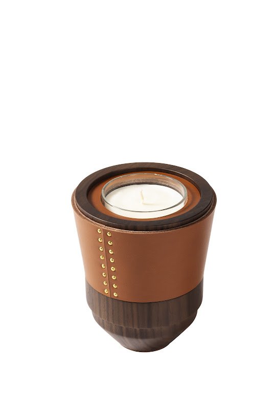 The candle holder is available in 3 sizes and 15 different kinds of leather