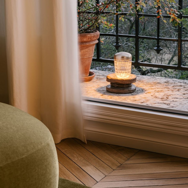 Rechargeable, with two light temperatures ( light warm light & extra warm white ) and three levels of intensity, it can be adapted to suit your needs.