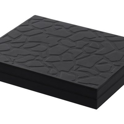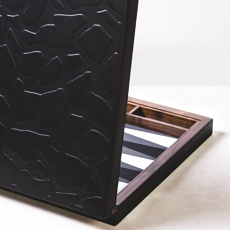 Covered with black nappa leather walnut case with hinge in walnut.