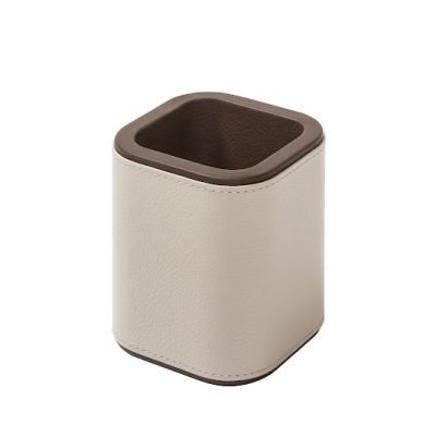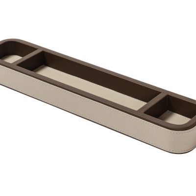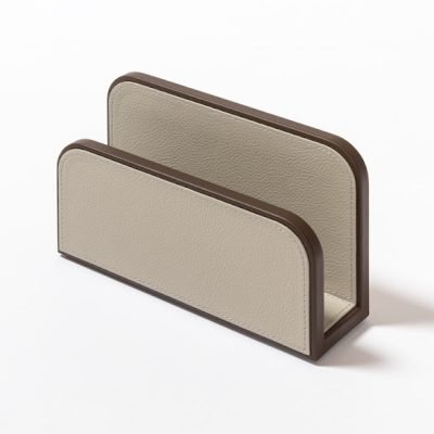 Inspired by minimalist design principles, this leather desk set with pecan nut wood, features clean geometric lines and soft, rounded corners, adding a touch of refinement to any workspace.
