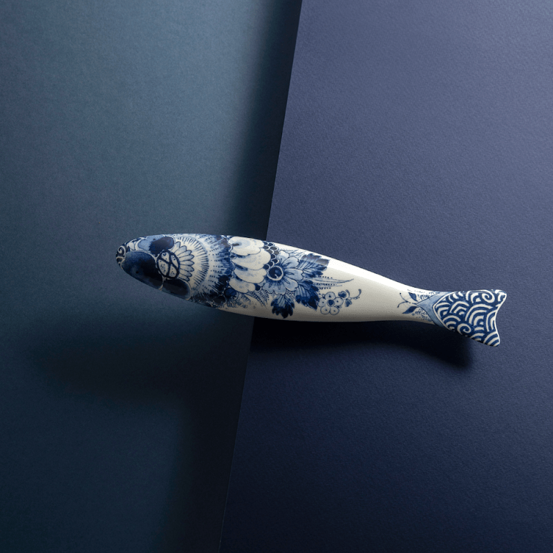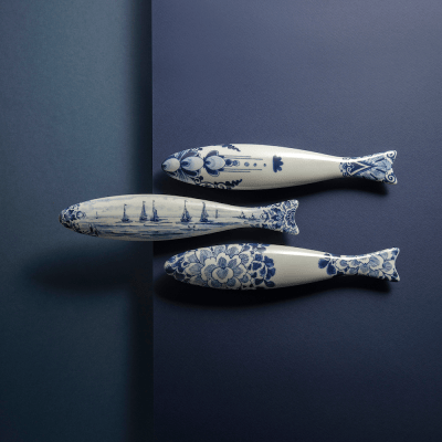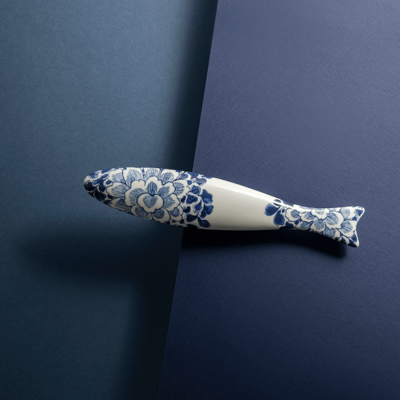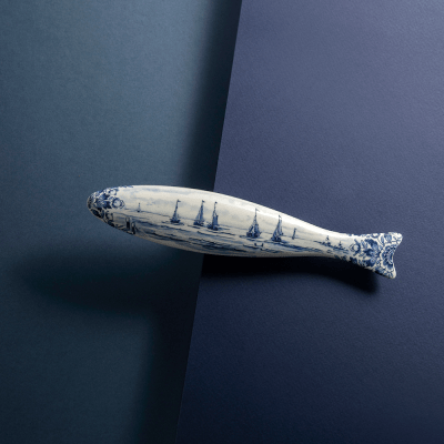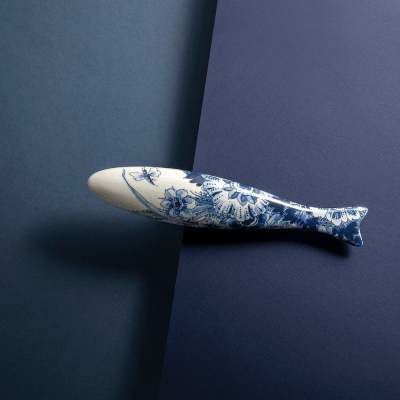 Blue Herring is a unique collection of six ceramic herrings, each with its own beautiful Delft Blue decoration. The herring is designed as an eye-catcher on the wall. Royal Delft will introduce this series in 2024, in collaboration with the design duo Koens and Middelkoop. Each design in this series, including Peacock Scales, Dragon Fly Flower, Mesdag’s Fleet, Flower Scales, Art Deco and Flower Bed, tells its own story and combines the Dutch herring tradition with beautiful Delft Blue artwork. The pegs can be hung decoratively on the wall using a cork and a nail.