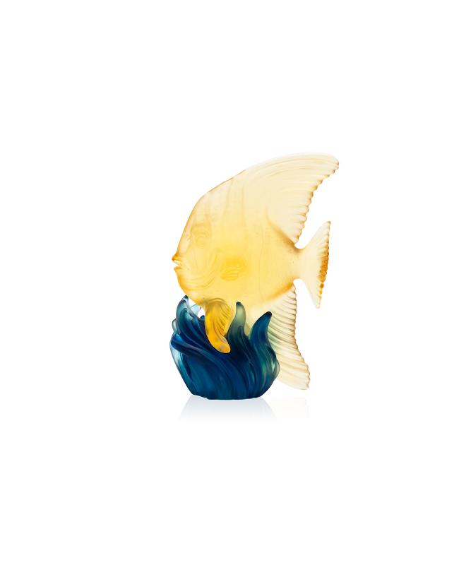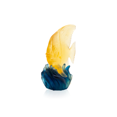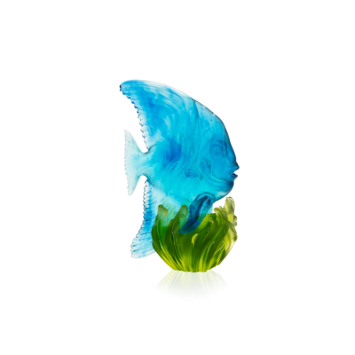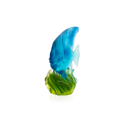 The sculpture is made of Pâte de Cristal, the base is aluminium gilded/blue patinated, bronze.