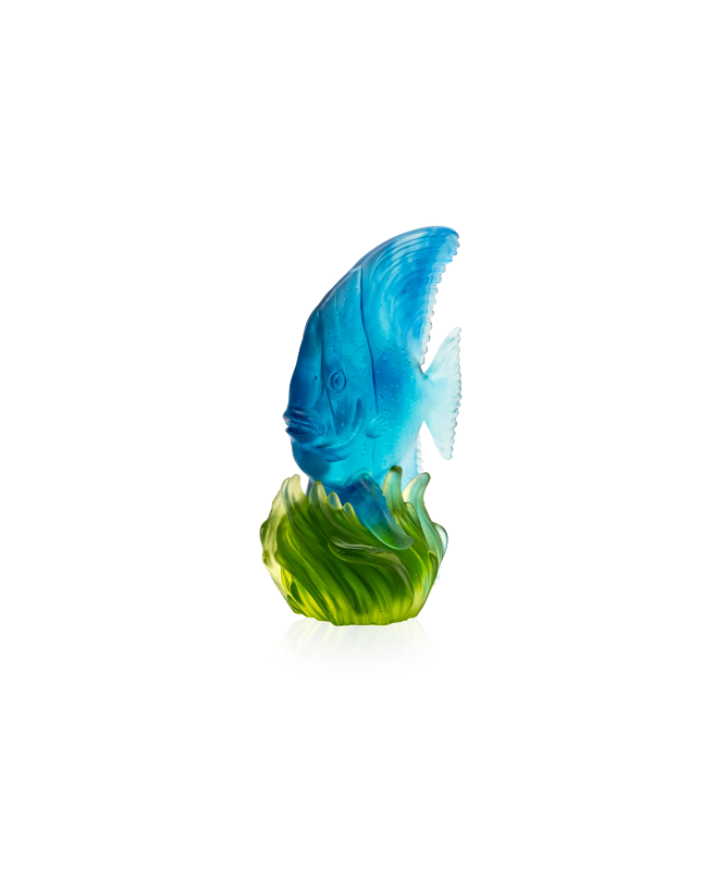 The sculpture is made of Pâte de Cristal, the base is aluminium gilded/blue patinated, bronze.