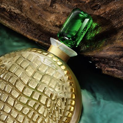 This year’s crystal collection pays tribute to the wild nature of Lalique and marks a creative turning point that revives the audacity and detour of the House’s origins. With its dramatic yet elegant form, the 2023 Limited Edition’s audacious design features the unmistakable imprint of crocodile skin delicately molded into its crystal body, capturing the graphic power of this fearsome animal with a sensual touch. The sculptural flacon’s imposing 200ml stature, a nod to the awe-inspiring strength and calibre of this powerful beast. Its wide collar exudes luxury, the finely cut stopper, in richest Amazon green, like a faceted emerald jewel or singular glistening eye, the perfect finishing tribute to this magnificent creature